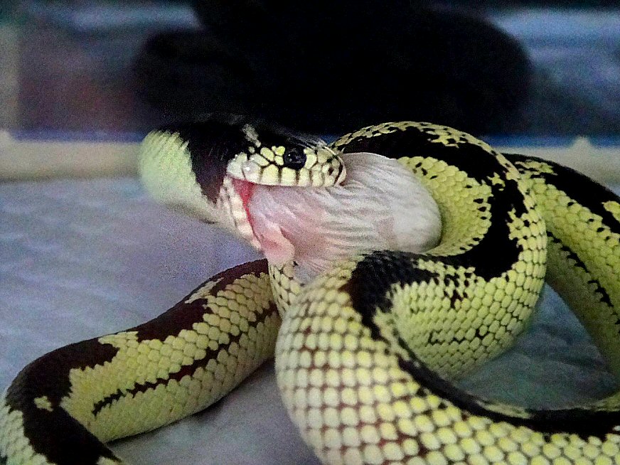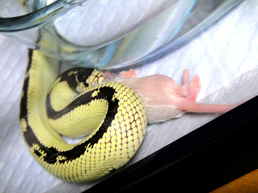 尻尾だけ食べさせて前足落として鼻先切ってようやく餌と認識していただけました